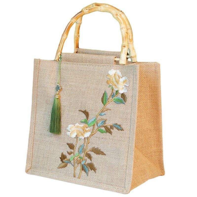 Der genähte Faden fügt sich wunderschön mit dem Jute -Material ein und verleiht der Tasche ein erstklassiges, strukturiertes Erscheinungsbild.